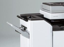 コピー出力後の用紙にステイプルやパンチ穴開けの処理ができます。最近では製本印刷が可能な「中綴じ処理」に対応したタイプが増えています。